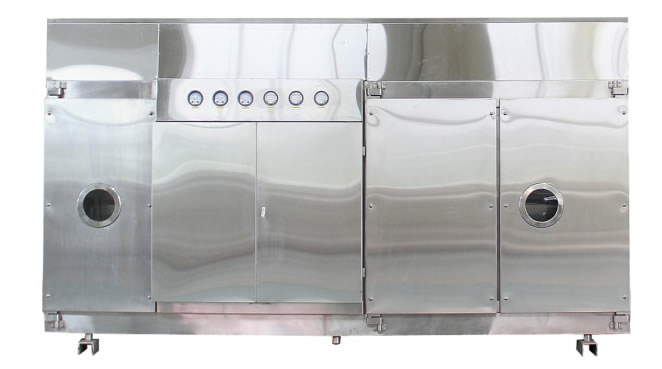 本機配有超聲(shēng)波清洗網帶(dài)裝置(訂貨時定(dìng)),並(bìng)留有溫度檢(jiǎn)測口、塵埃粒子檢測口。本機可聯線或單機使用。